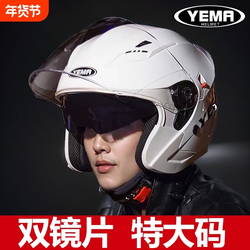野马大码摩托车头盔男士电动车半盔冬季保暖大头围5xl新国标A类3C