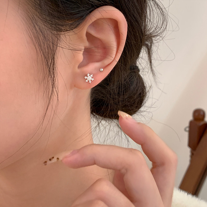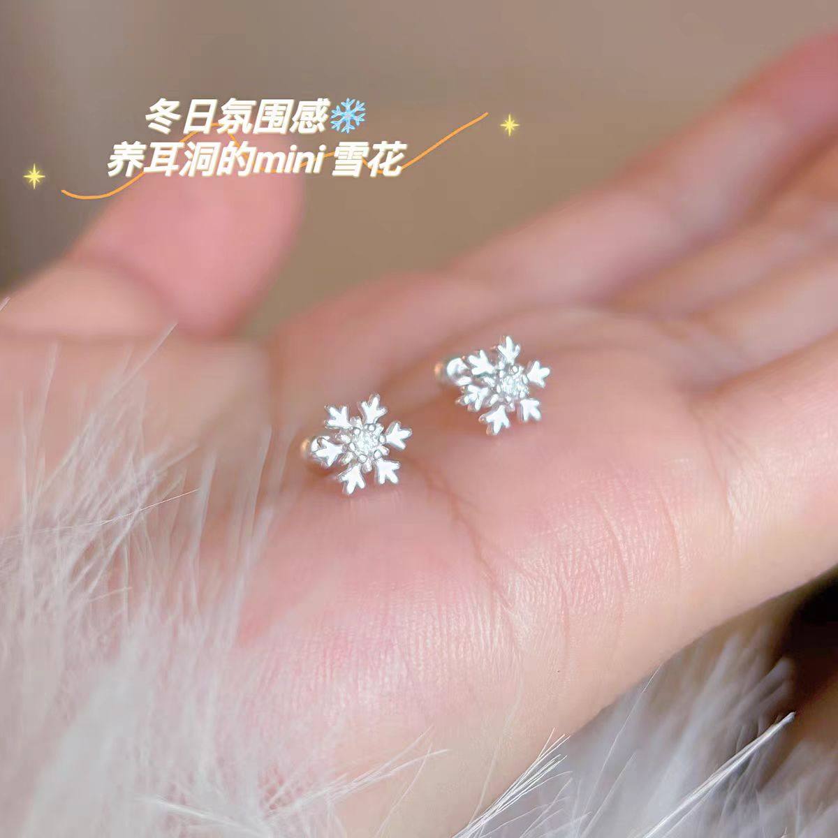 999足银雪花耳钉女士耳饰精致2025新款爆款高级感养耳洞银饰耳环