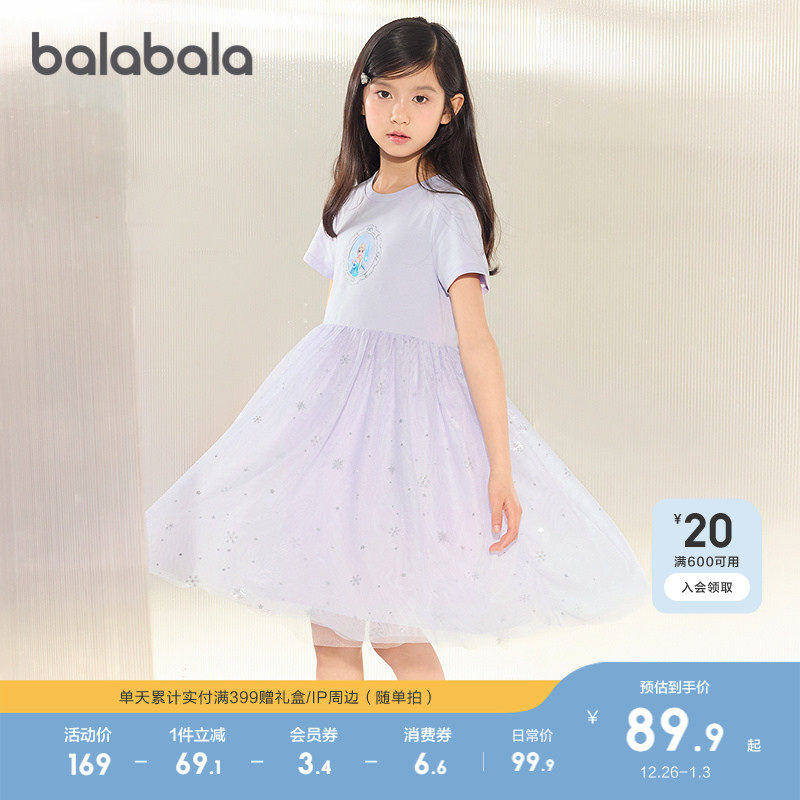 【迪士尼IP】巴拉巴拉女童裙子儿童连衣裙2025新款夏装爱莎网纱裙