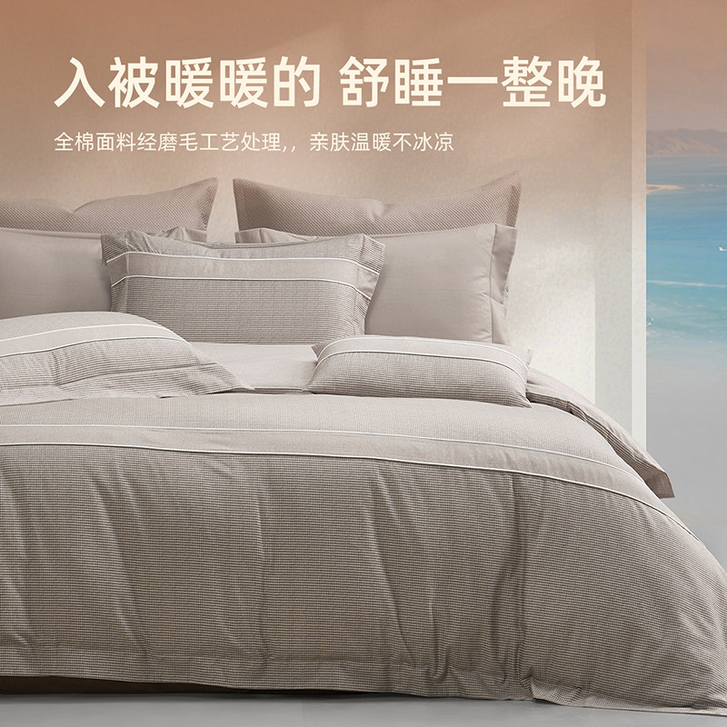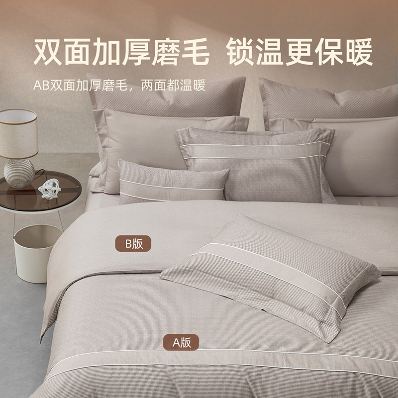 水星家纺全棉磨毛四件套纯棉抗菌加厚保暖床上用品秋冬天床单被套