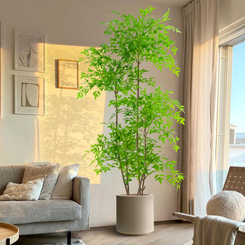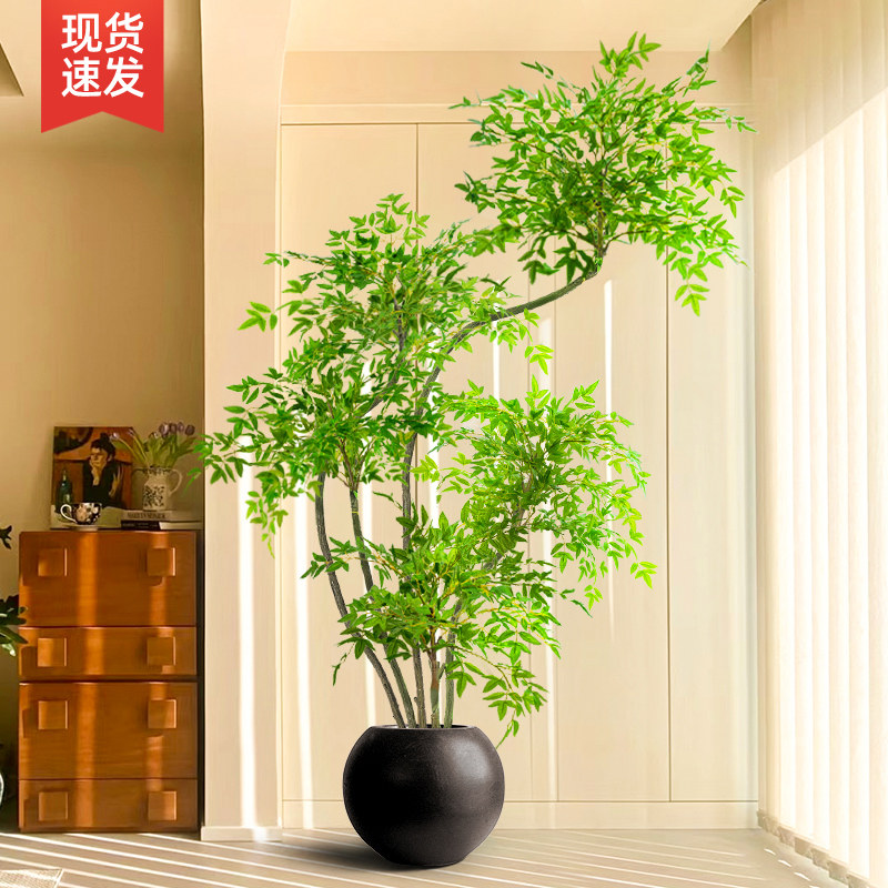 仿真绿植室内南天竹阳台客厅植物装饰大型盆栽落地仿真花电视柜