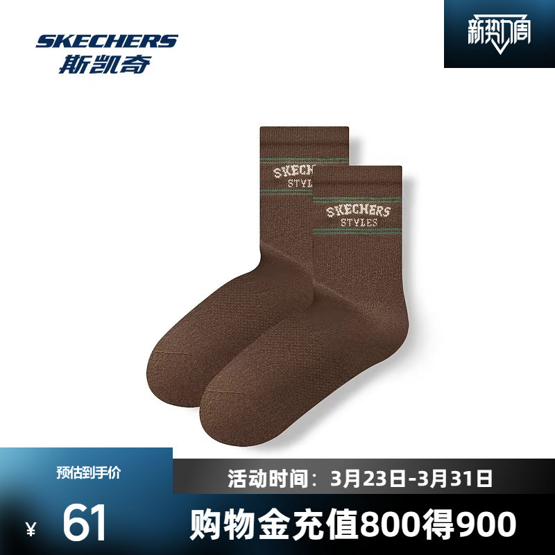 斯凯奇男士中筒袜抗菌羊毛袜栗子棕中世纪蓝风尚系列基础百搭袜