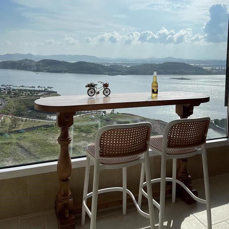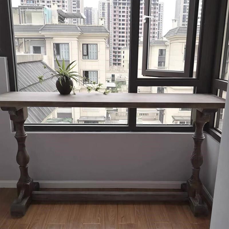 热销美式乡村长条桌靠墙实木餐桌吧台桌阳台靠窗窄桌家用窗边高脚