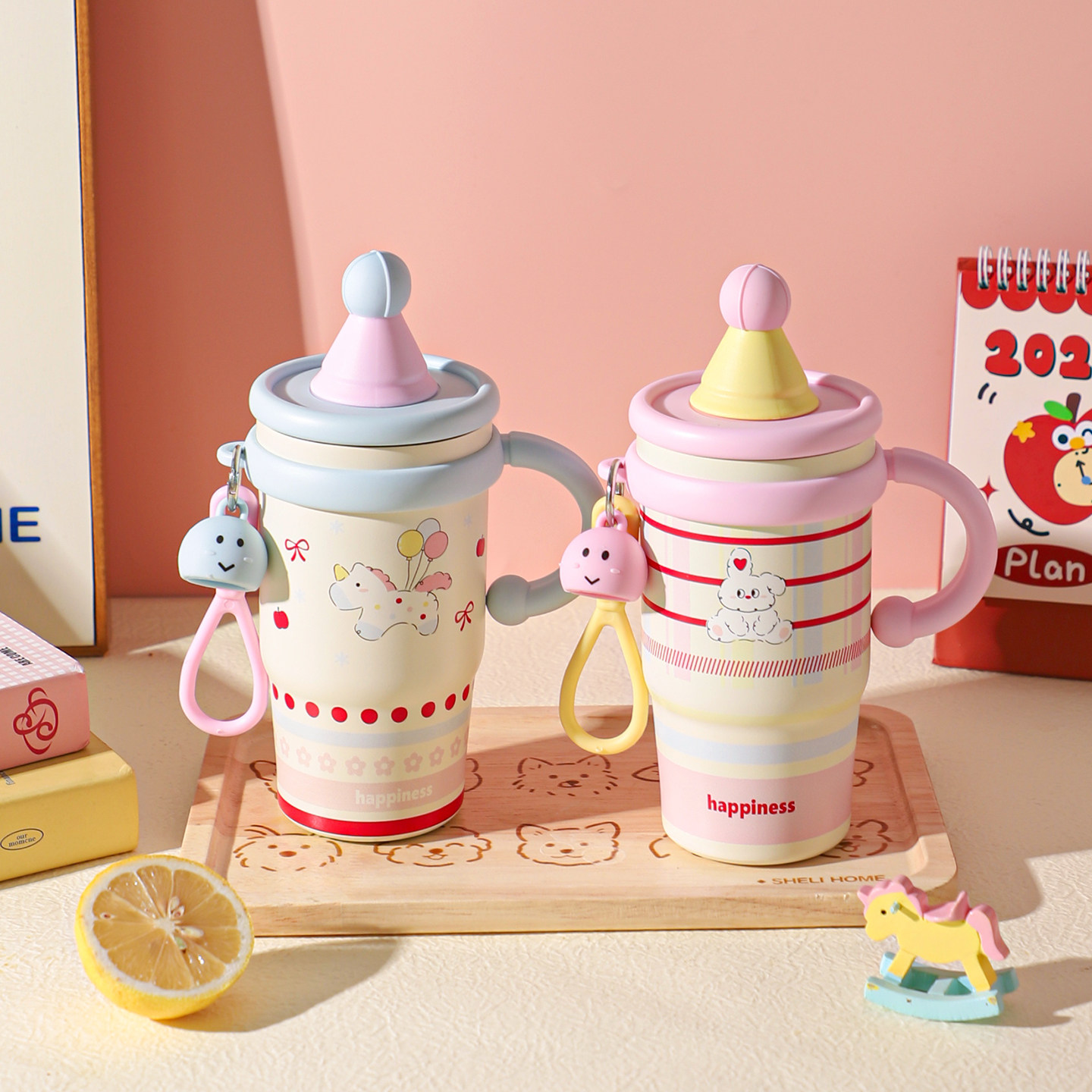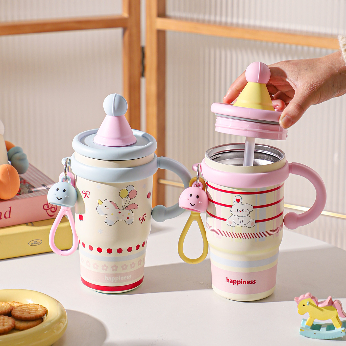 舍里可爱卡通保温杯316不锈钢儿童便携水壶大容量学生上学喝水杯