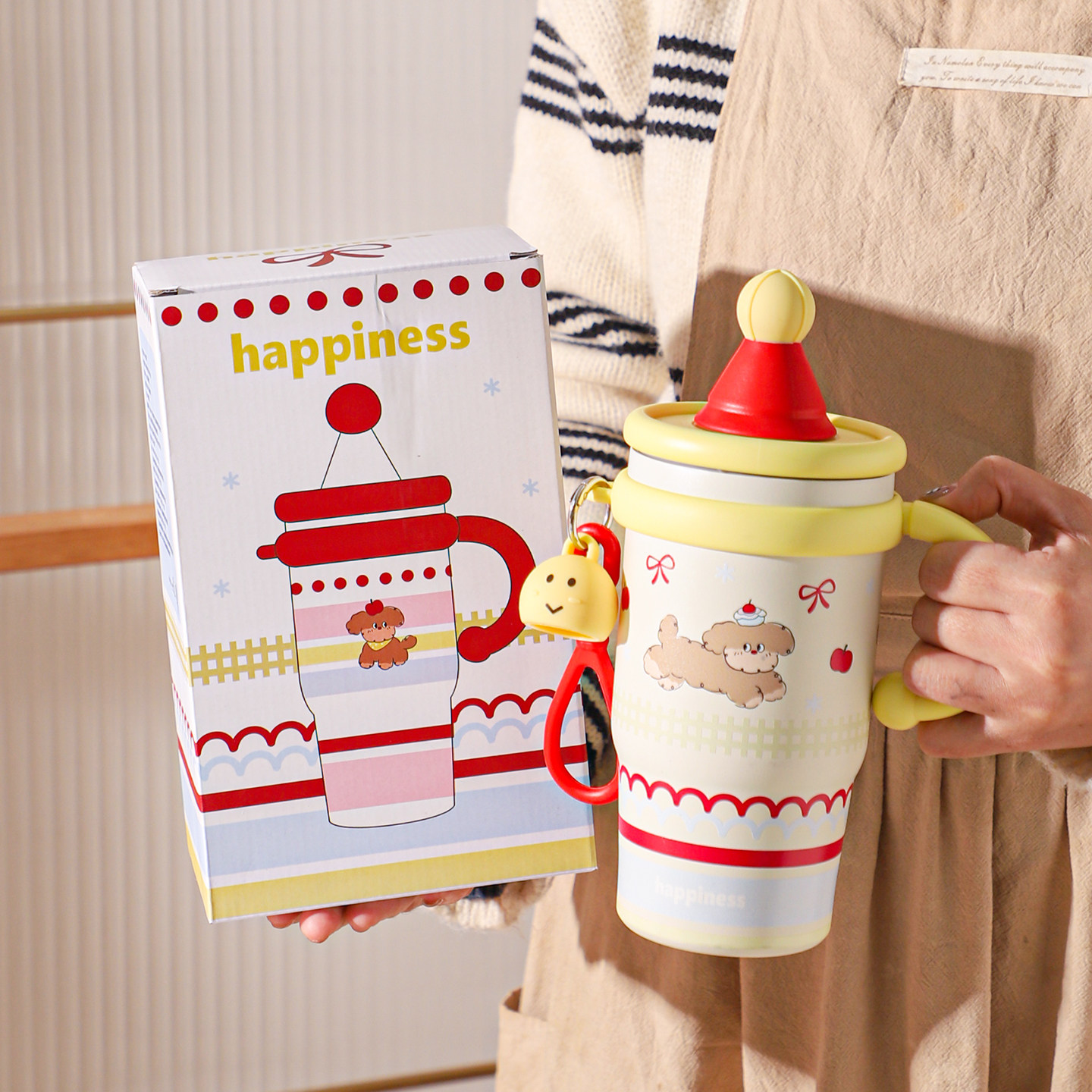 言仓线条小狗保温杯保冷水杯陶瓷高颜值儿童女生情侣圣诞生日礼物
