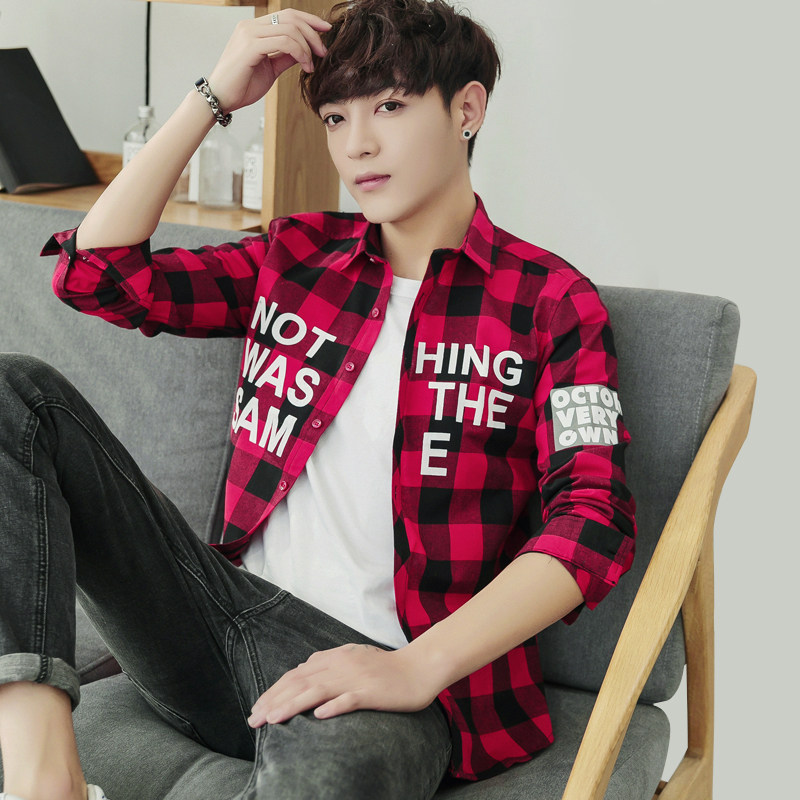 查尔斯桃心美式长袖衬衫男士春秋夏季薄款宽松休闲格子衬衣女外套