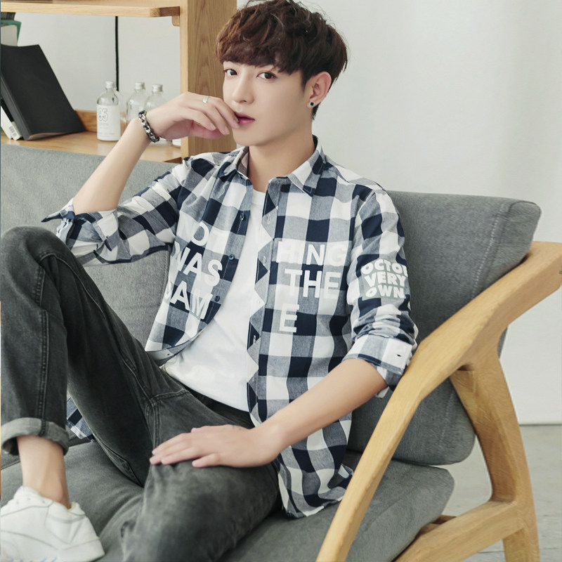 啄木鸟秋季新款男士长袖100%全纯棉磨毛格子衬衫 高级感休闲衬衣