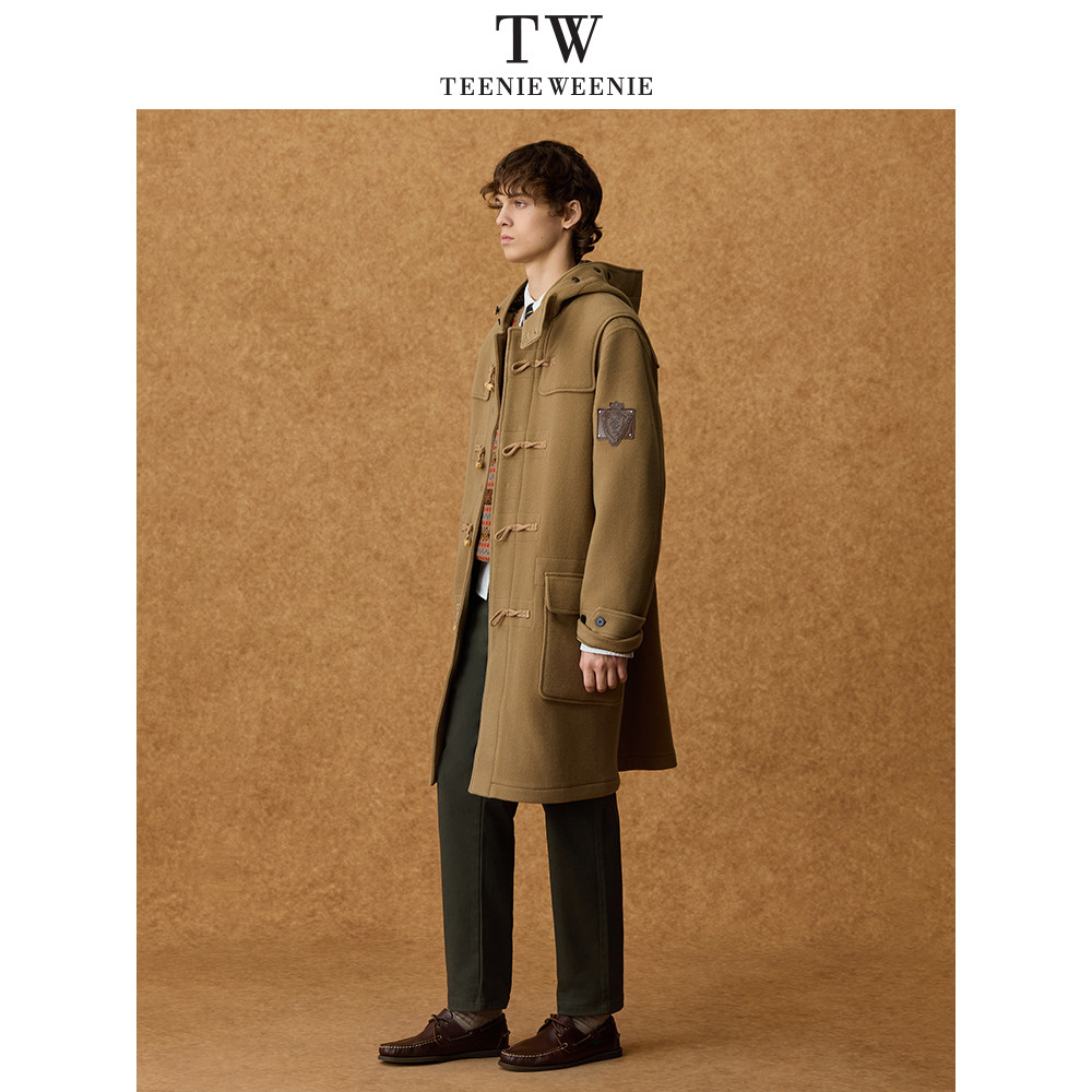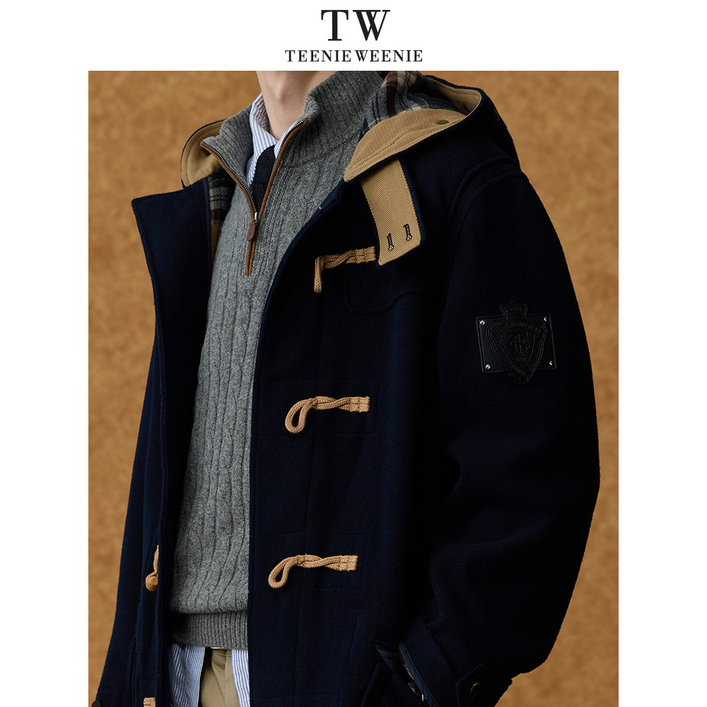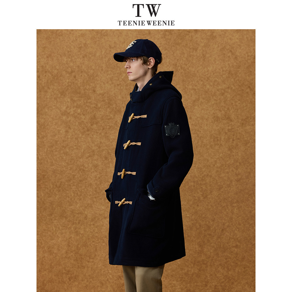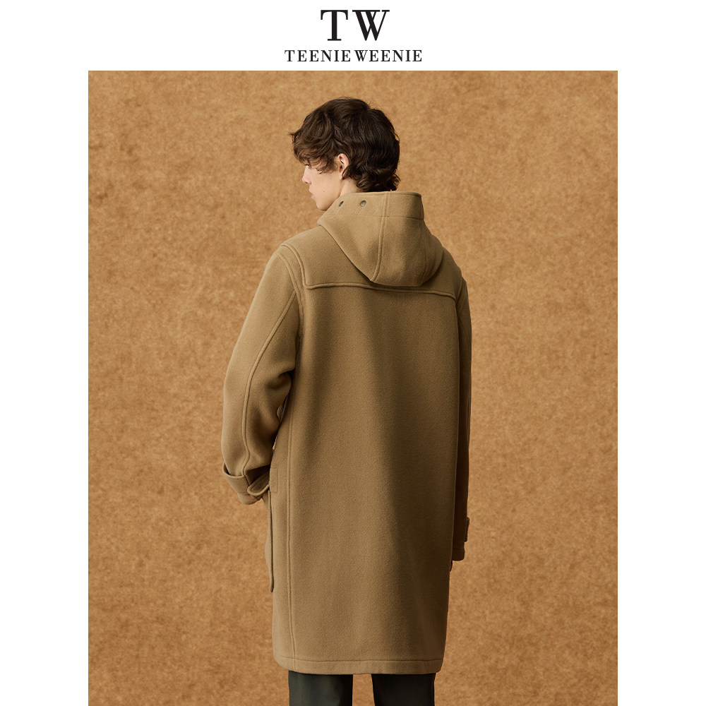 Teenie Weenie小熊男装牛角扣中长款复古通勤保暖毛呢外套