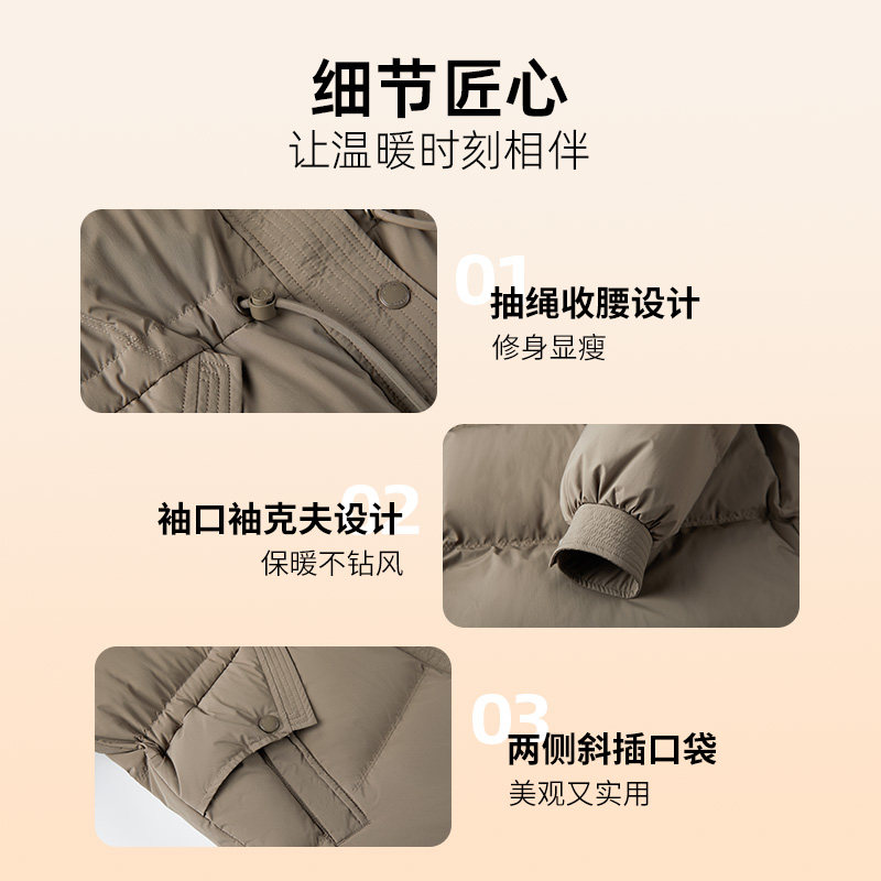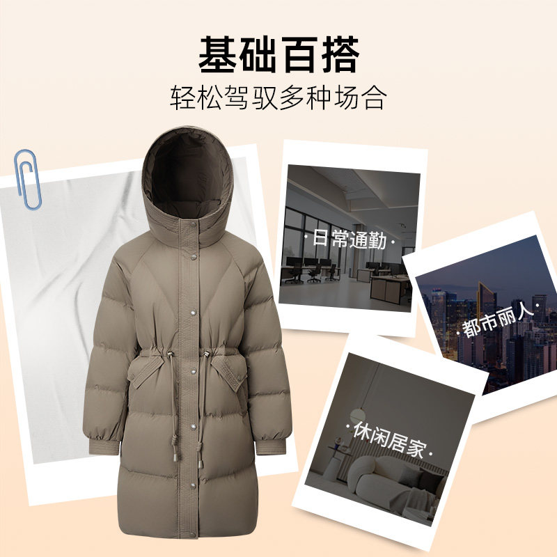 千仞岗2025秋冬新款中长款羽绒服连帽保暖抽绳收腰显瘦宽松外套女