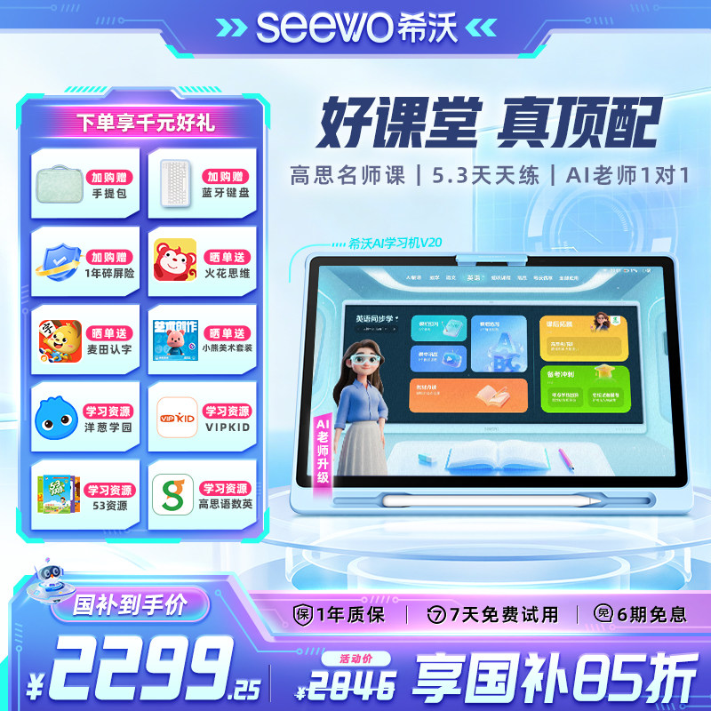 【官旗比价 买贵退差】seewo希沃护眼学习机V20 儿童启蒙早教机小学初中高中官方旗舰AI学习平板英语学习