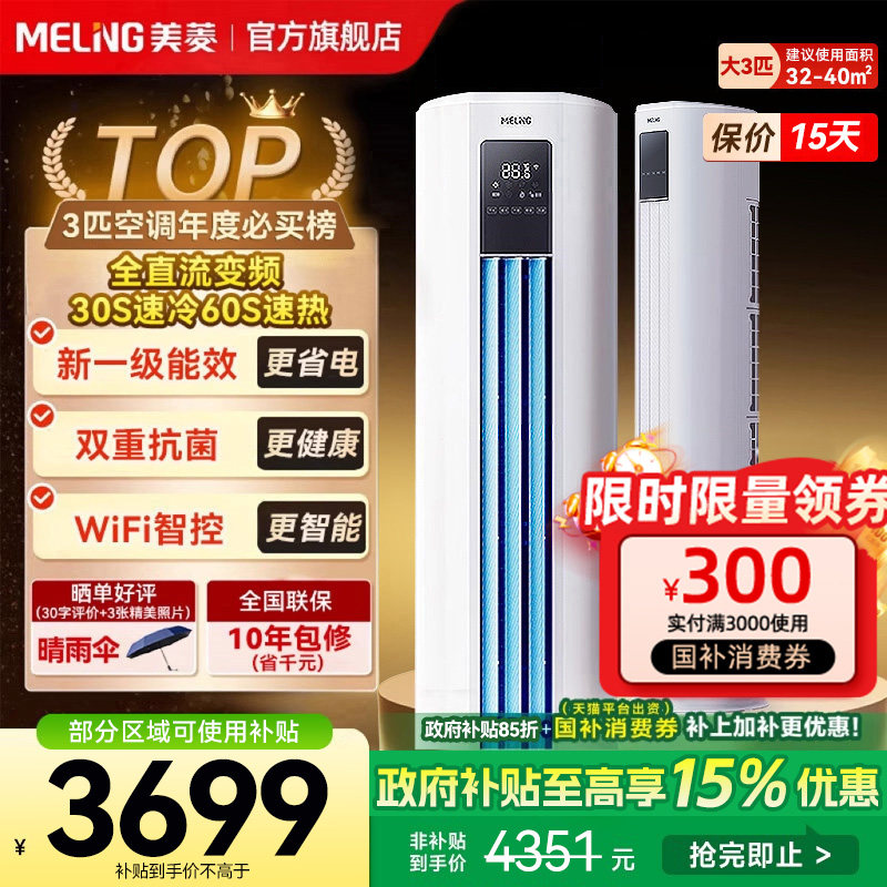 【国补】美菱大3匹柜机空调变频新一级能效冷暖客厅立式空调柜机