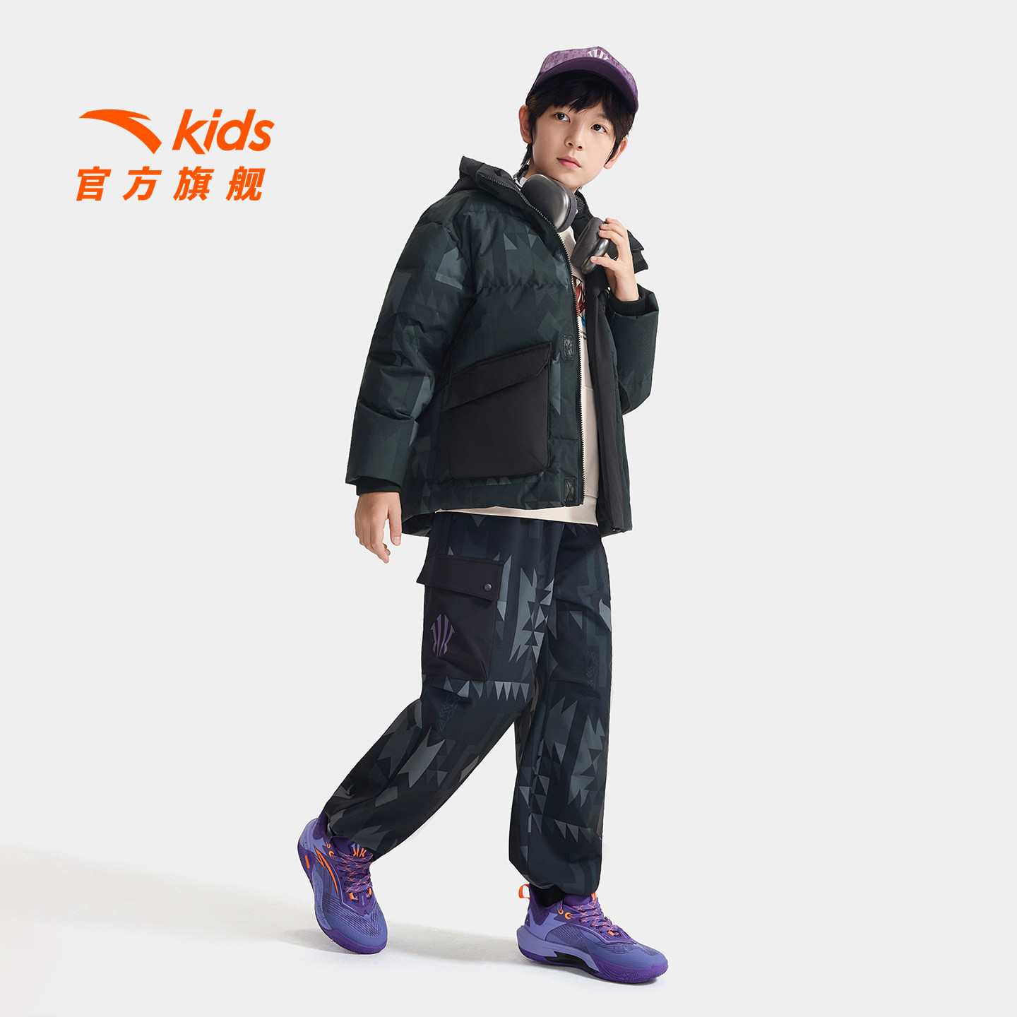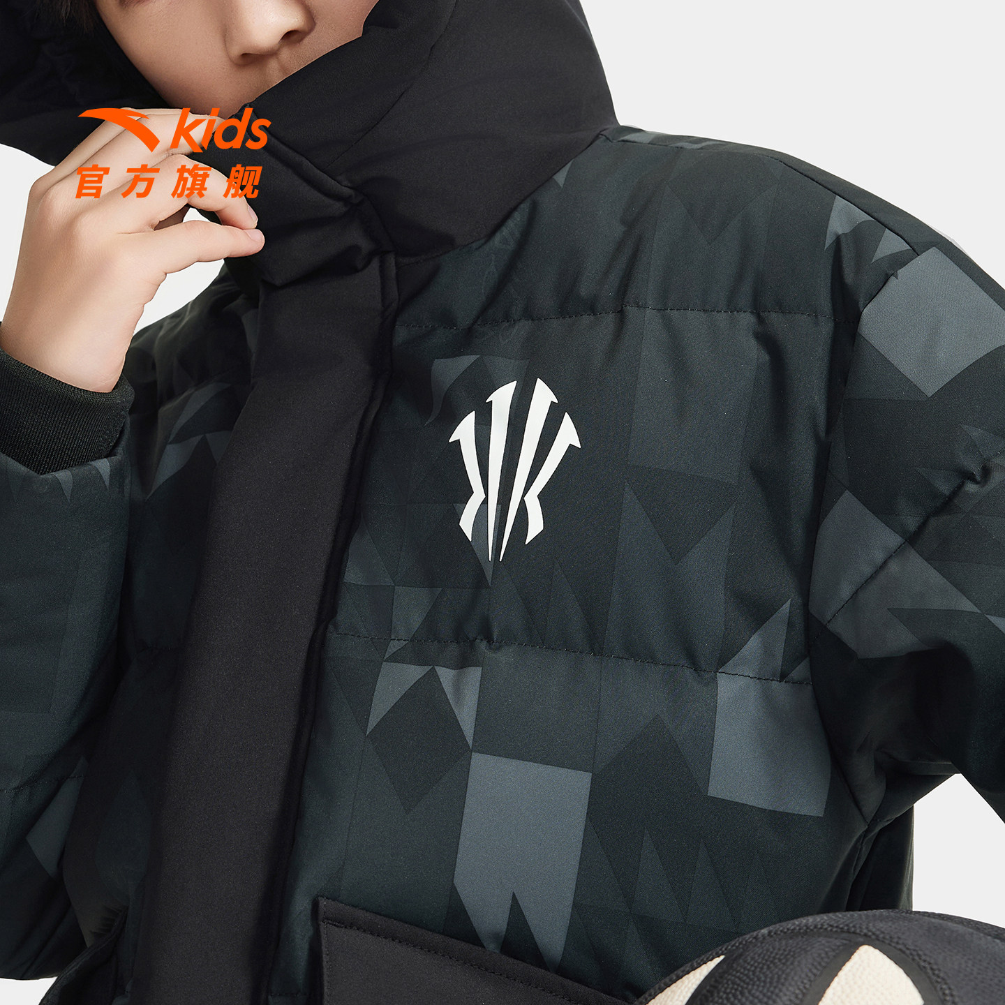 欧文系列安踏儿童男童羽绒服2025年冬款上新舒适保暖三防羽绒外套