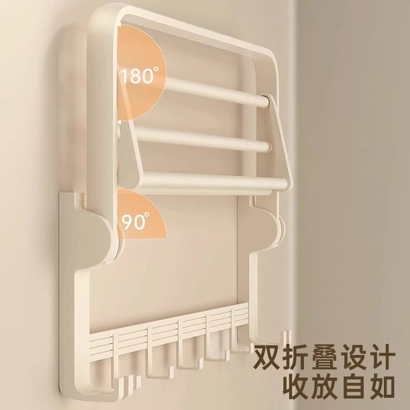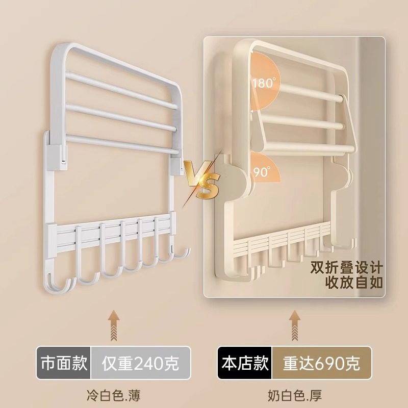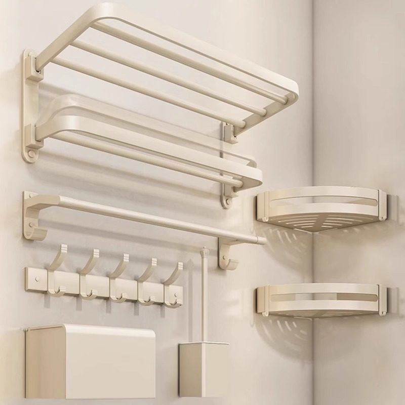 奶油风毛巾架免打孔卫生间奶白色置物浴巾架浴室卫浴五金挂件套装