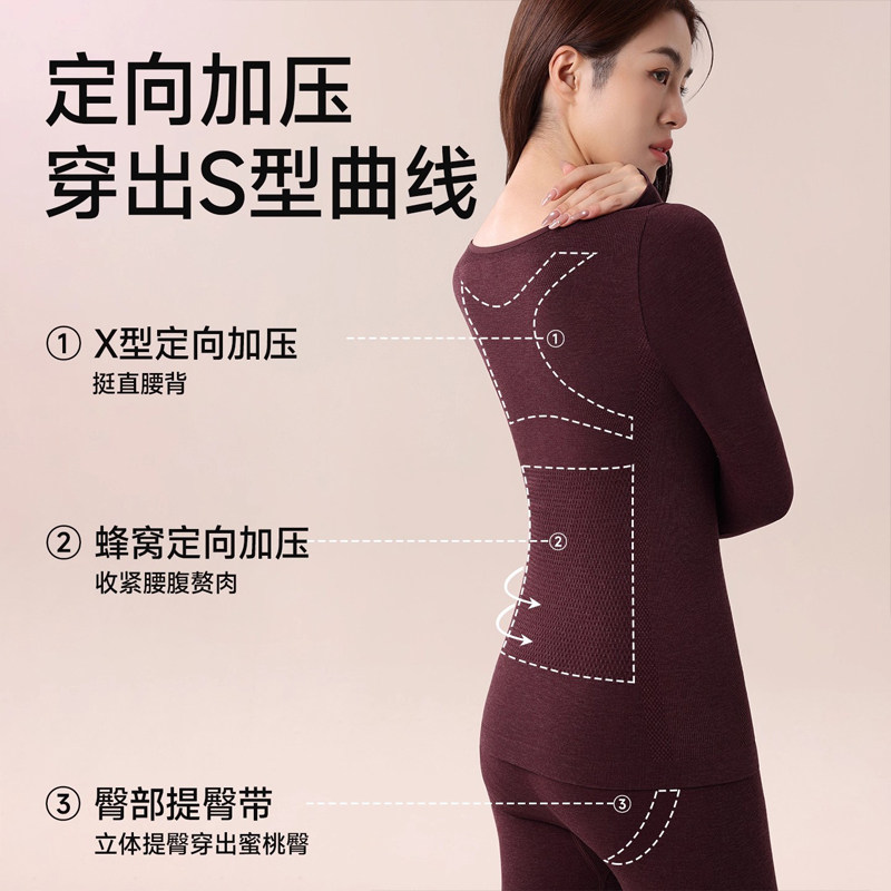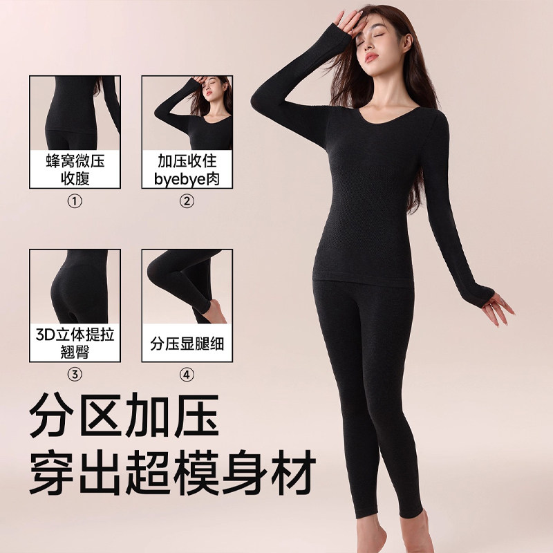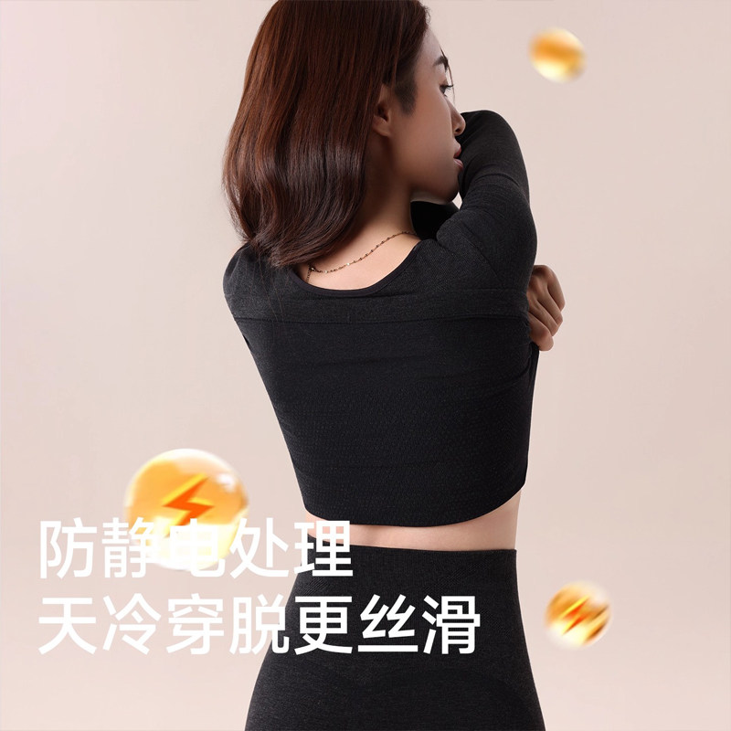 秋冬季女士套装无痕发热打底薄款亲肤透气保暖可外穿修容山羊绒