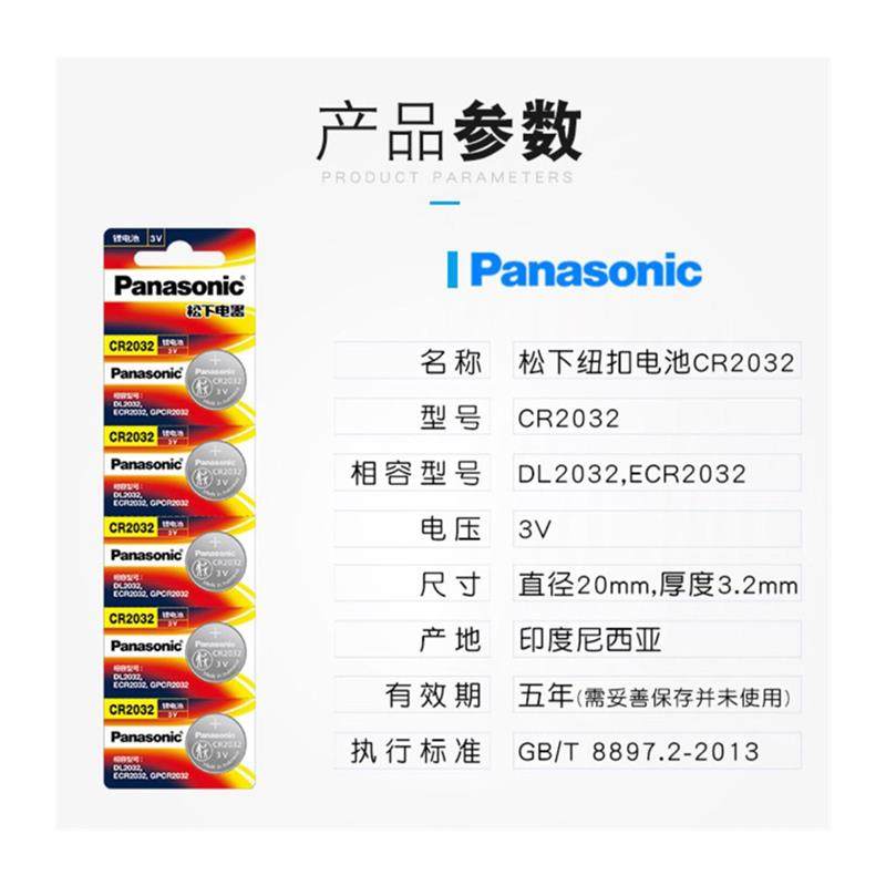 松下纽扣电池5粒CR2032/CR2025/CR2016电子3V适用摩托汽车钥匙遥控器CR1620/CR1220/CR1616/CR1632/CR2450