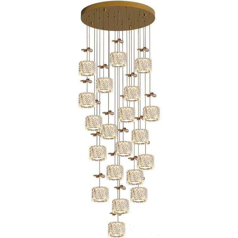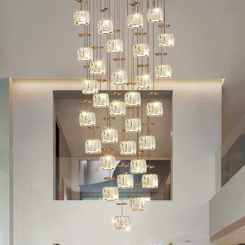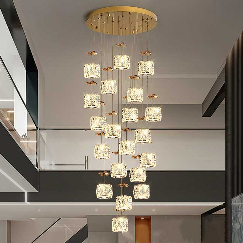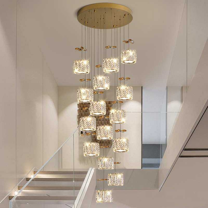 复式楼梯间水晶长吊灯轻奢风现代简约别墅公寓客厅中空创意新款灯
