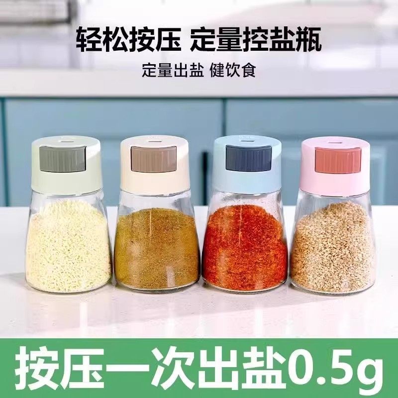 定量盐罐调料罐调料盒玻璃厨房密封防潮控按压式调味瓶精准烹饪
