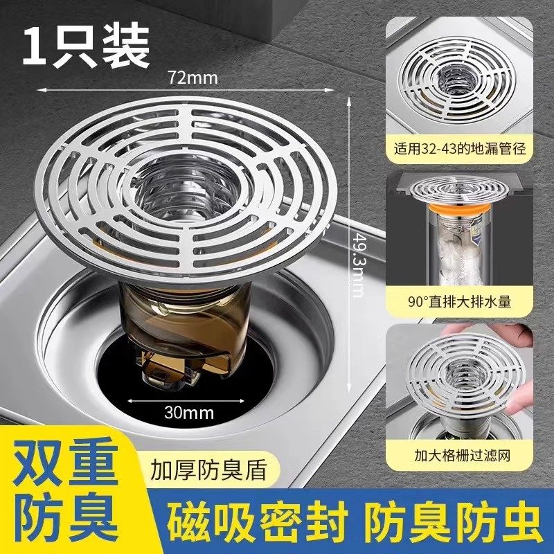地漏加厚不锈钢防臭五金过滤芯卫生间阳台全铜下水道洗衣机浴室