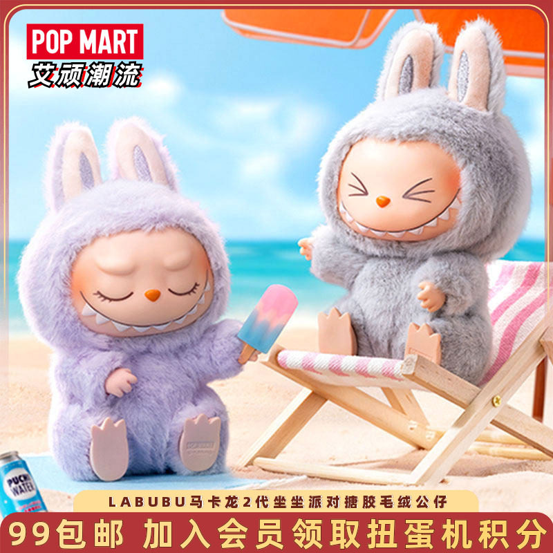 POPMART泡泡玛特LABUBU马卡龙2代坐坐派对搪胶毛绒公仔盲盒挂件