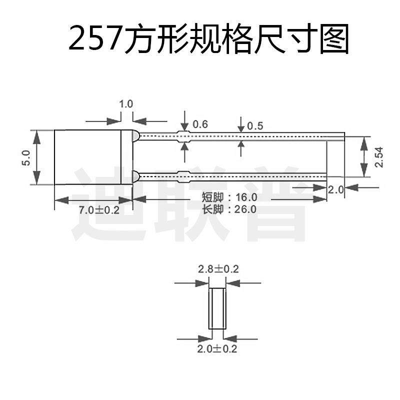 直销方形LED灯珠257直插红发红高亮短脚发光二极管