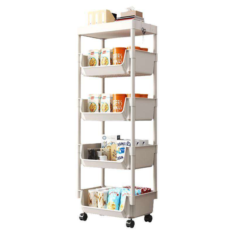 A带轮小推车厕所储物置物架客厅落地移动零食收纳家用多层储物架