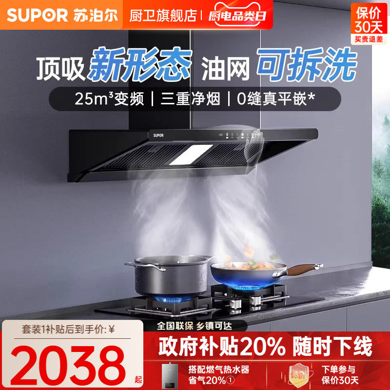 苏泊尔MT33S套装无界抽油烟机燃气灶套餐顶侧一体大吸力顶吸