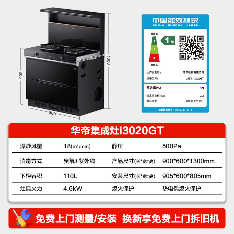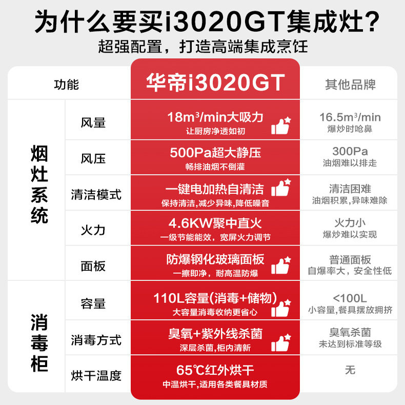 华帝集成灶i3020GT全腔二星级消毒柜自清洁油烟机家用一体灶官方