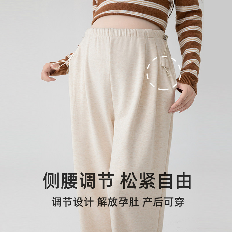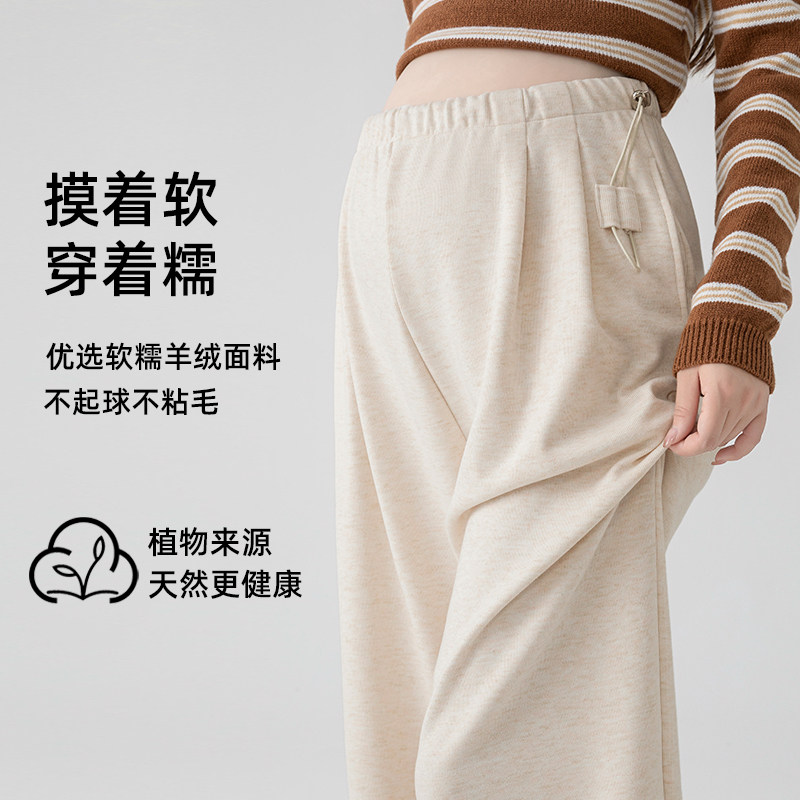 婧麒孕妇阔腿裤子春秋款外穿糯米裤无托腹不勒肚子休闲加绒冬季装