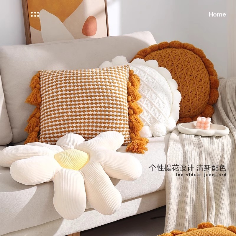 北欧ins风花朵抱枕办公室靠垫腰枕沙发汽车腰垫飘窗可爱床头靠枕