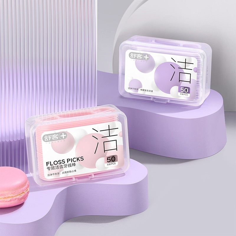舒客专效洁齿牙线棒正品牙线便携牙线盒50支剔牙牙签独立包装普通