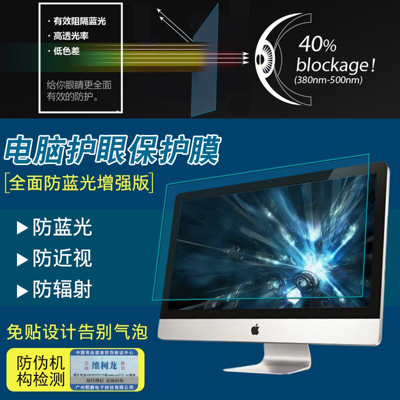 电脑防蓝光免贴24寸显示器屏幕防辐射32寸曲面34挂27寸润眼保护膜