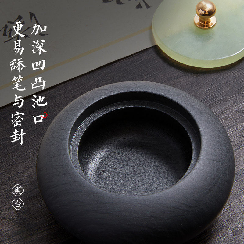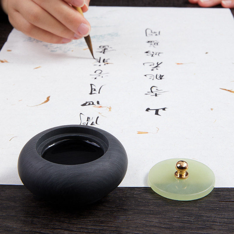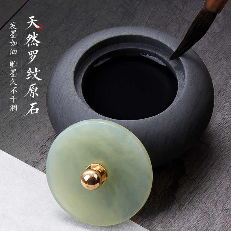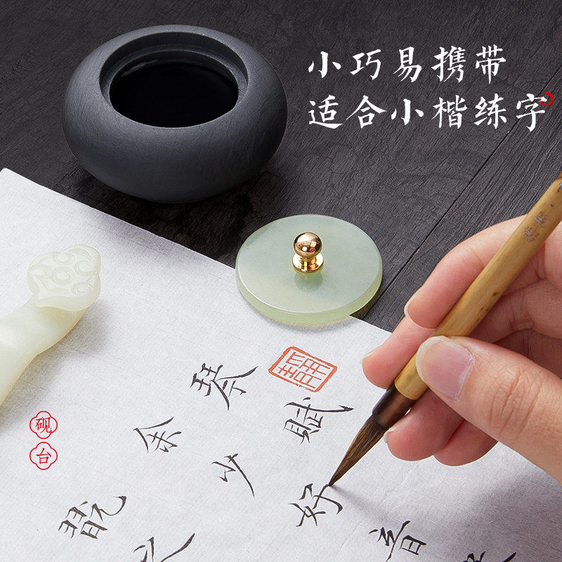 六品堂小楷玉石砚台天然罗纹原石带盖迷你掌中砚防蒸发不干墨文房四宝练字墨汁墨盒书法专用墨池小墨罐墨碟