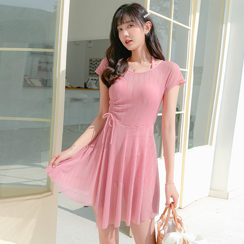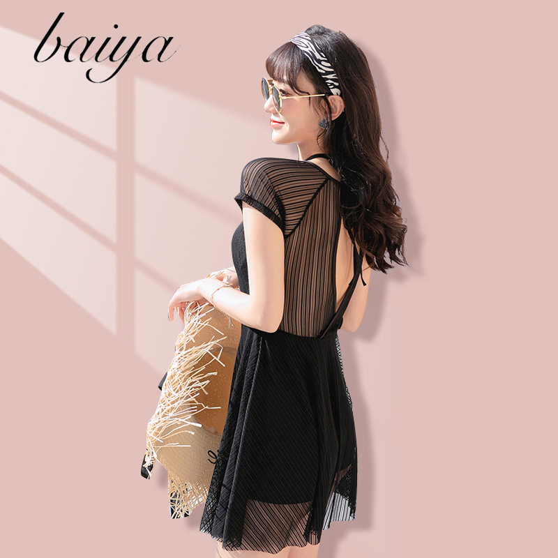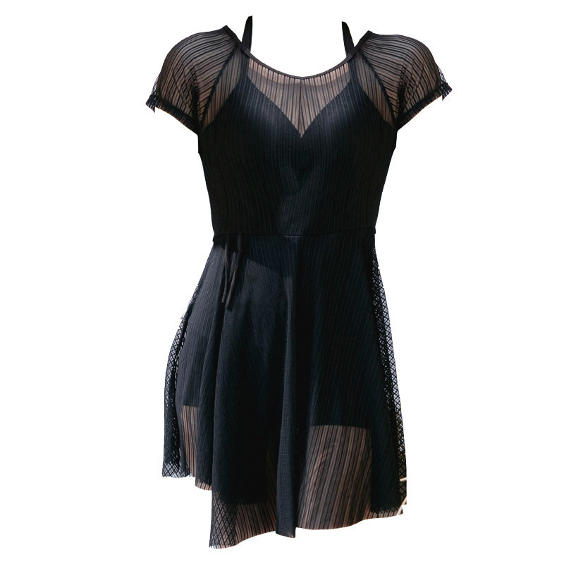 连体泳衣女性感遮肚显瘦裙式泡温泉游泳衣夏季度假黑色泳装批发
