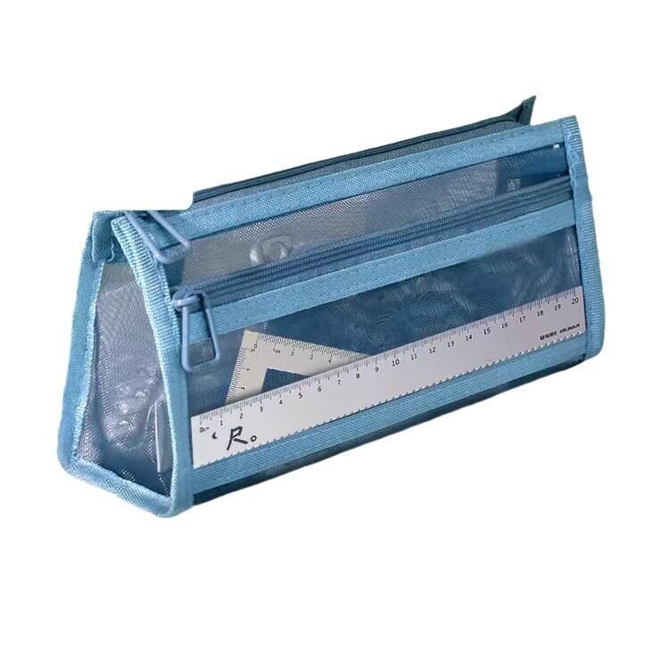 考试透明网纱笔袋学生考试专用文具袋双层大容量立体儿童笔袋简约