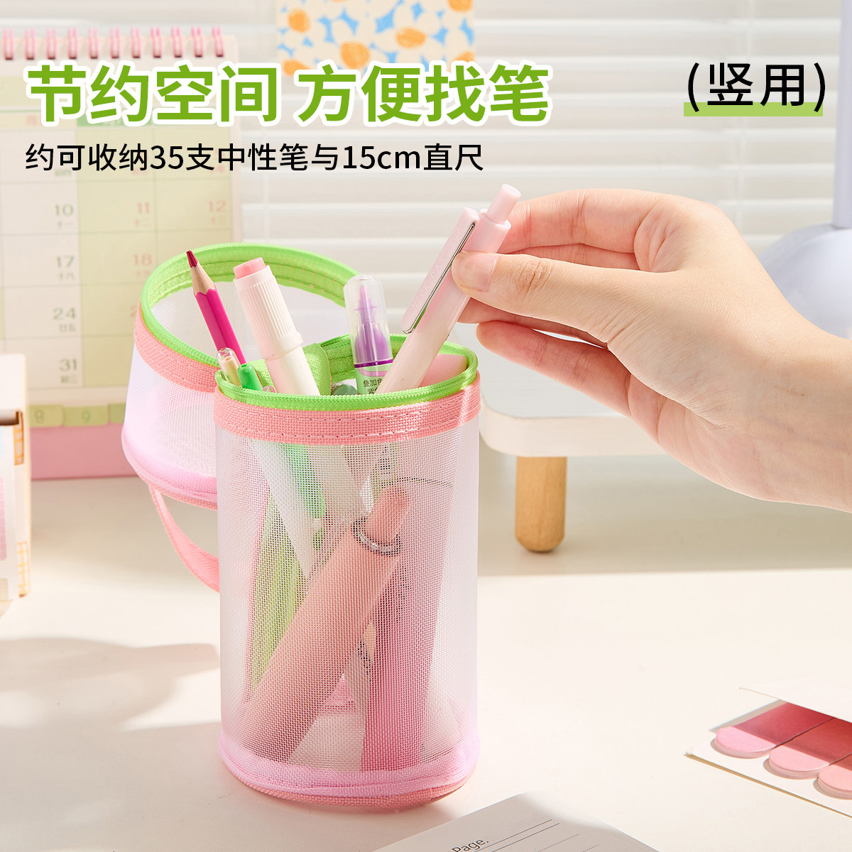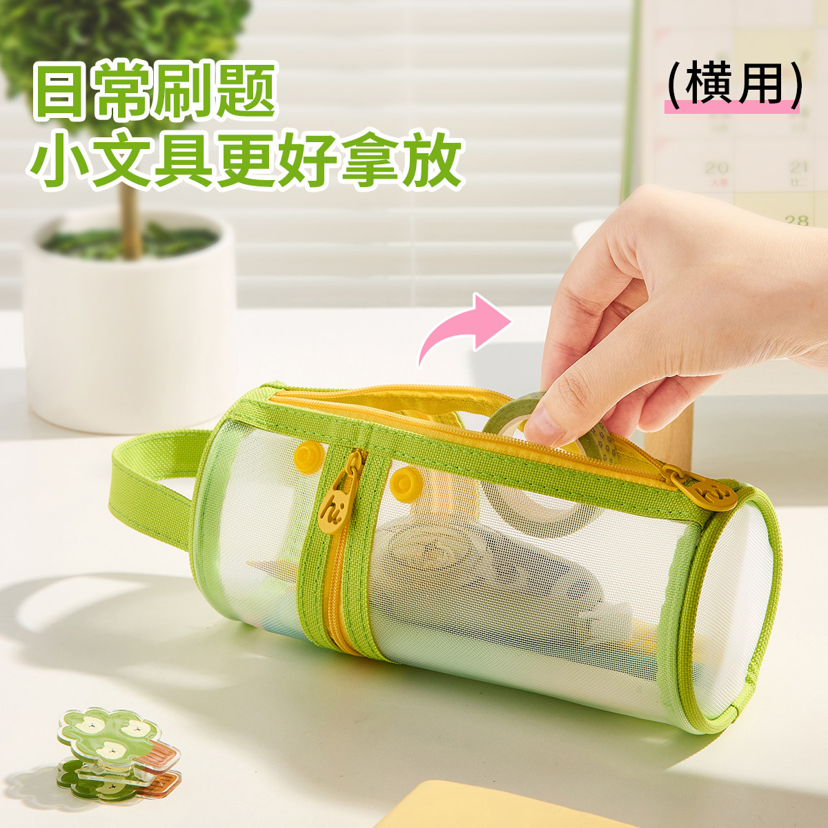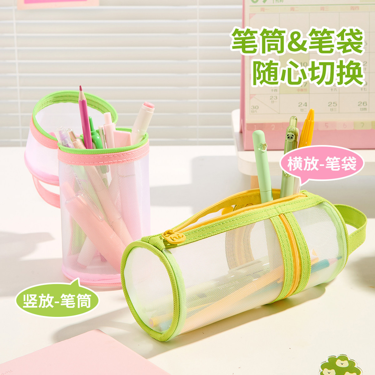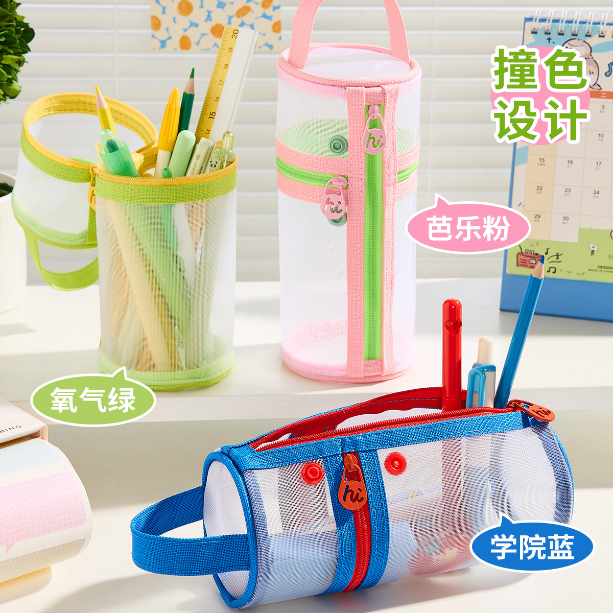 三年二班X嗨士袋 2026新款网纱笔袋高颜值ins风文具盒女孩款小学生透明铅笔盒考试专用大容量横竖两用笔袋F