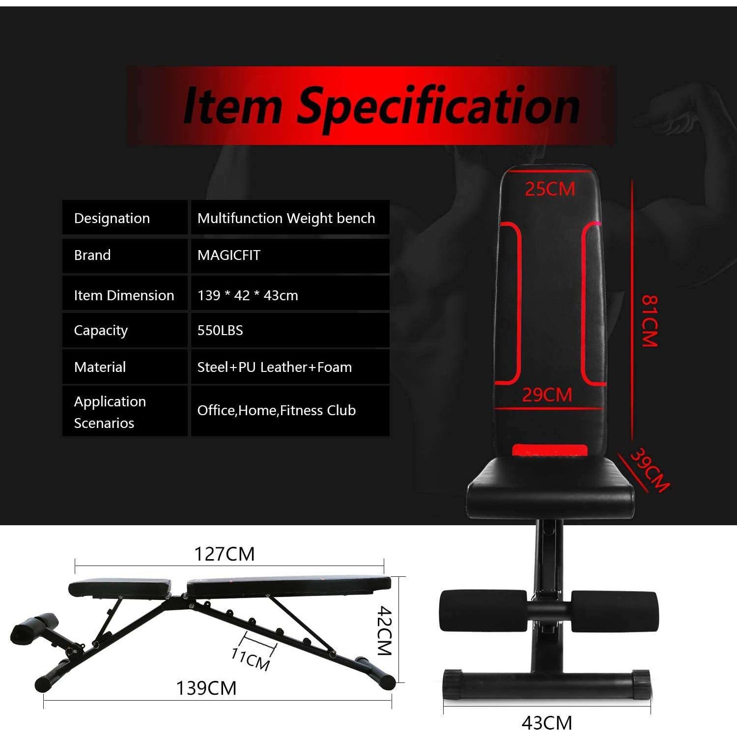 产地可折叠锻炼腹肌家用小飞鸟哑铃凳调节仰卧板腹肌板健身椅