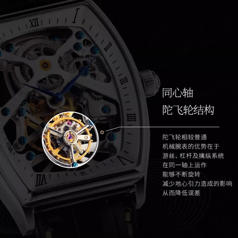 海鸥手表 传承系列 商务镂空同轴陀飞轮机械男表 酒桶型ST8210SK