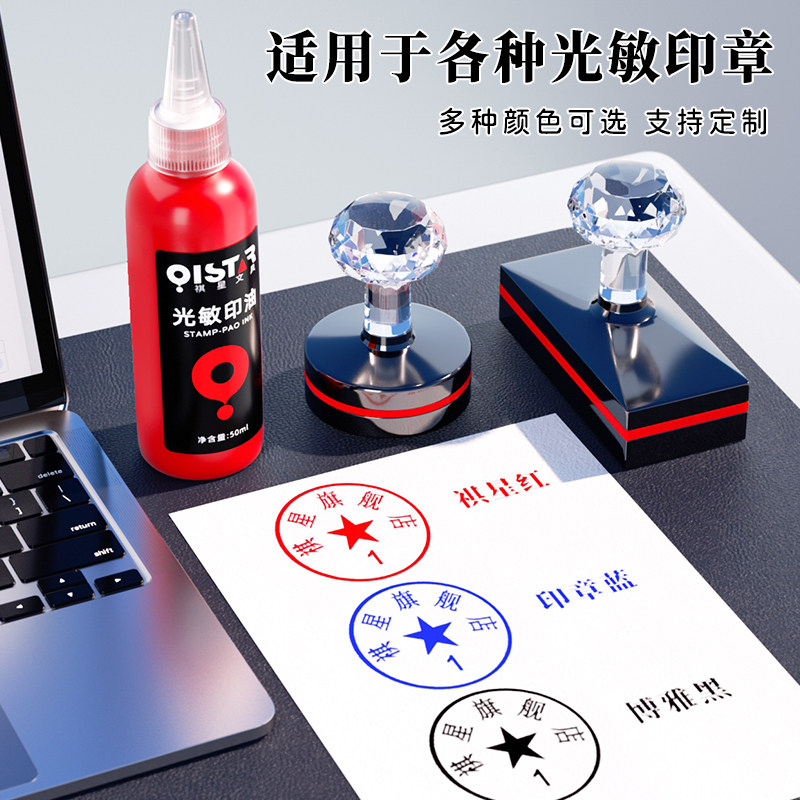 光敏印油红色印泥专用油快干大瓶100ml盖章速干墨水印章加印油 印台油墨印泥补充液原子印油黑色印油蓝色紫色