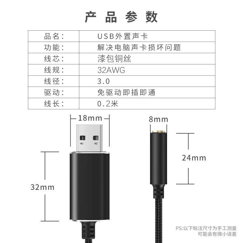 电脑音频接口外置声卡3.5母座耳机麦克风二合一声卡ub音频转接。