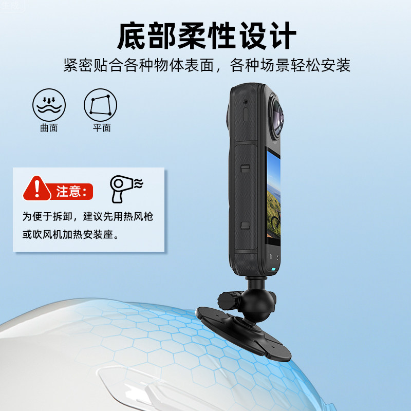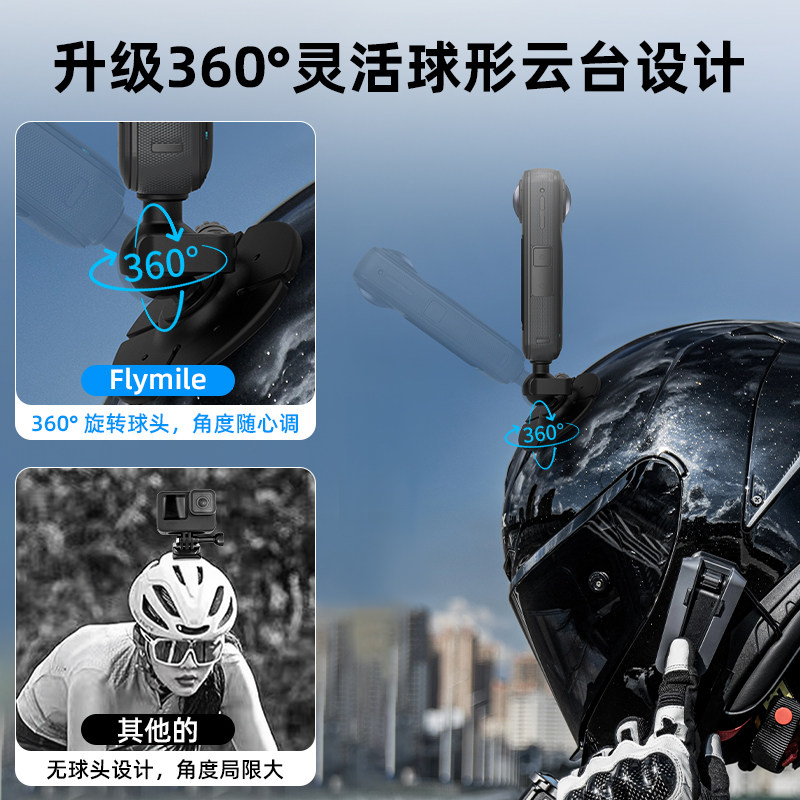 Flymile适用大疆Action6/4/5Pro运动相机柔性粘贴底座Isnta360 X5/AcePro2骑行头盔支架球头调节固定底座配件