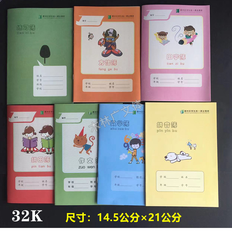 宁波市鄞州区统一作业簿1-2年级32k拼音本拼田簿田字格数学簿方格