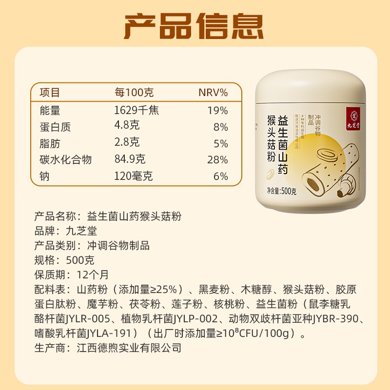 九芝堂益生菌养胃粉山药猴头菇粉食品肠胃营养早餐即食代餐礼盒
