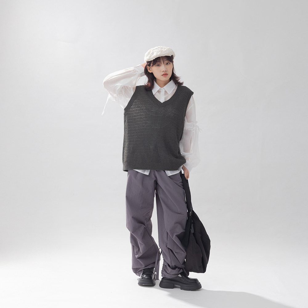 大洪官方【叠搭伴侣】百搭叠穿翻领无袖衬衫四季可穿背心打底衫女