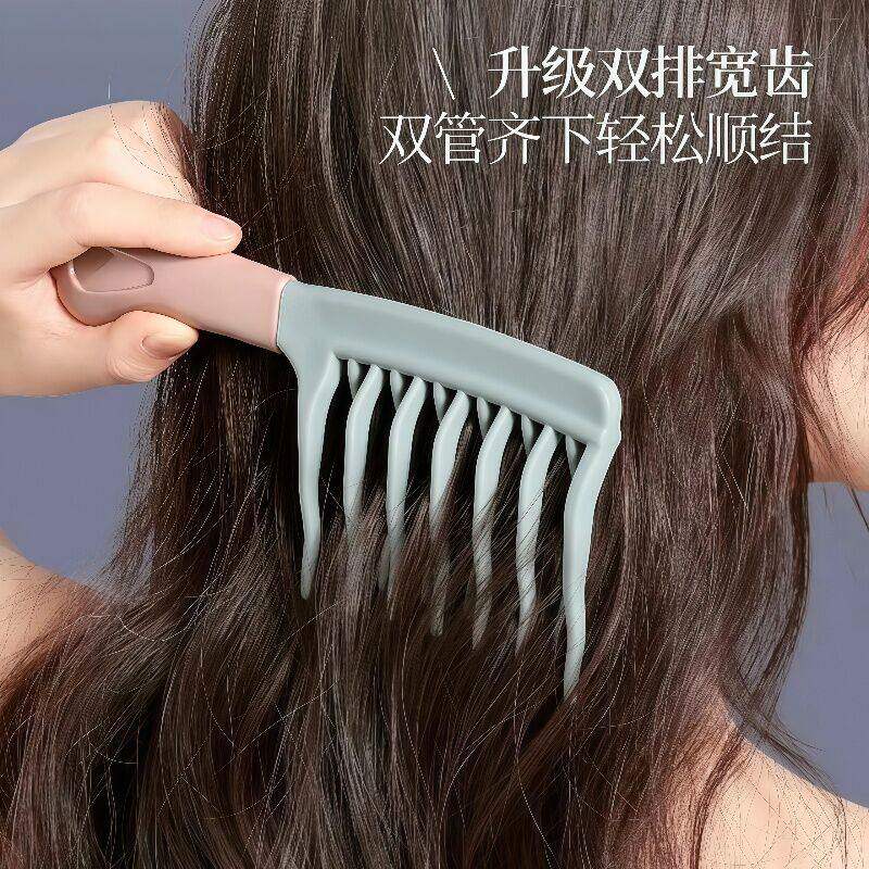 双排波浪齿卷发梳手柄头皮按摩梳蓬松梳理发店防静电卷发造型梳