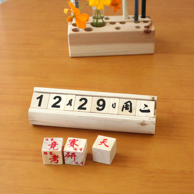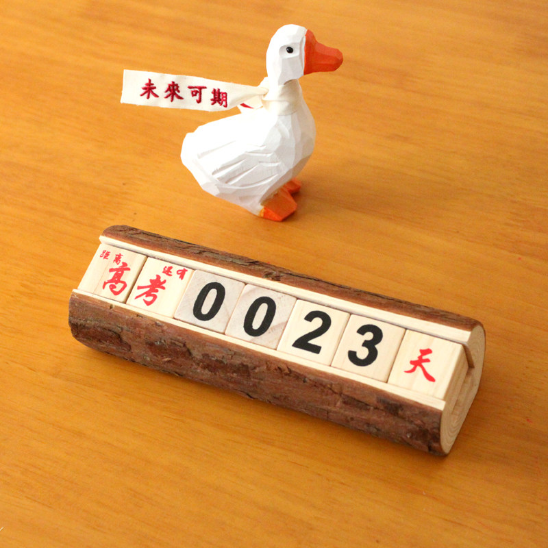 耳耳家居桌面木质日历摆件加油鸭考研万年历中考高考退休倒计时