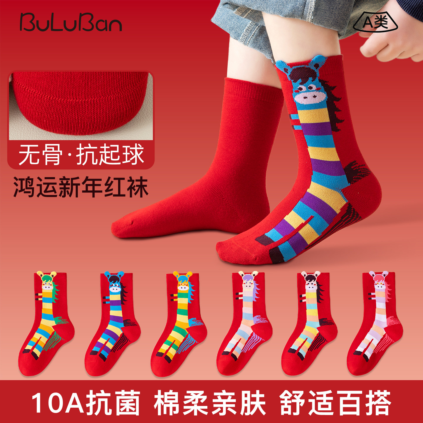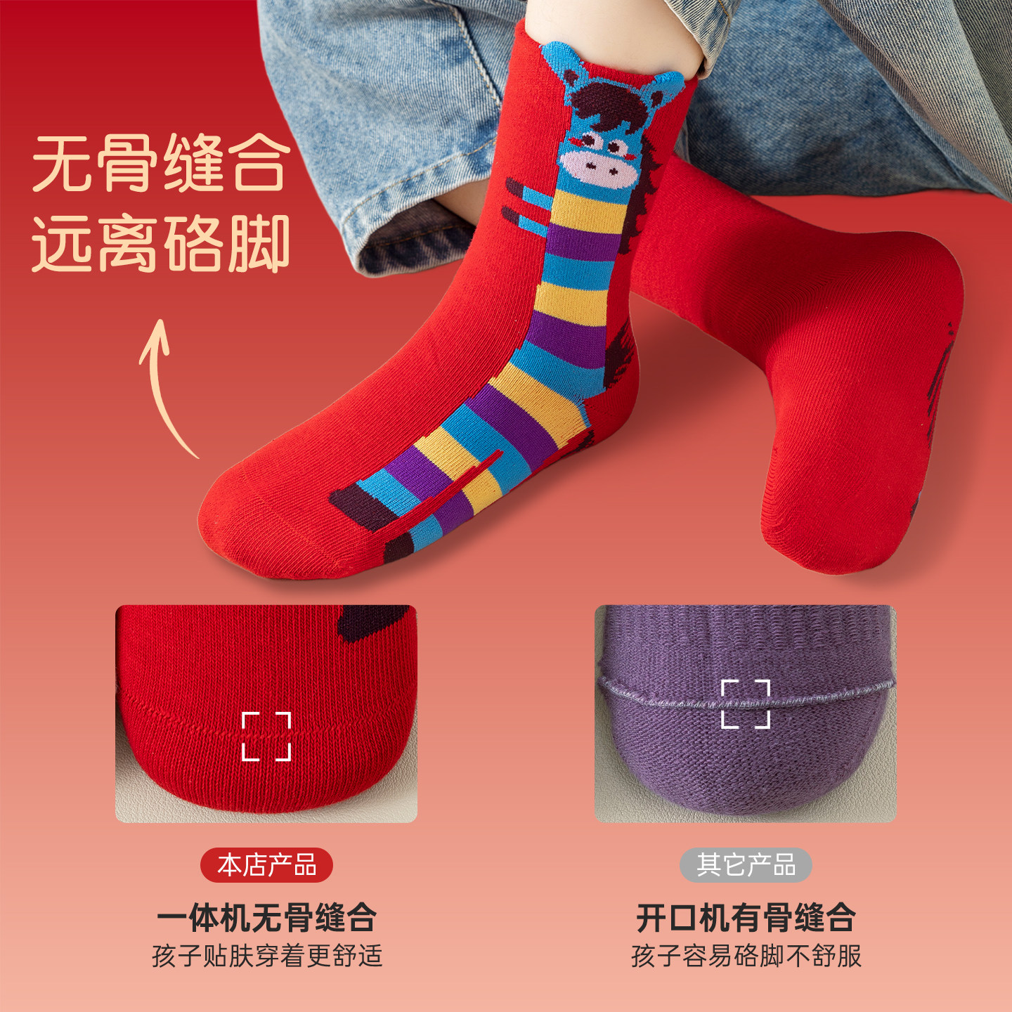 儿童袜子新年红色秋冬季马年纯棉男女童宝宝春款中筒袜不勒腿婴童
