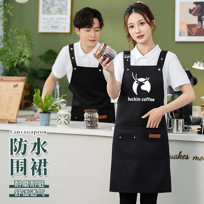 围裙防水防油厨房超市饭店餐厅美甲店服务员工作服女印字水果店