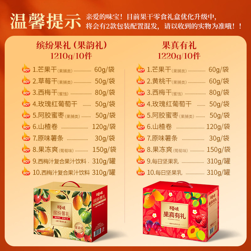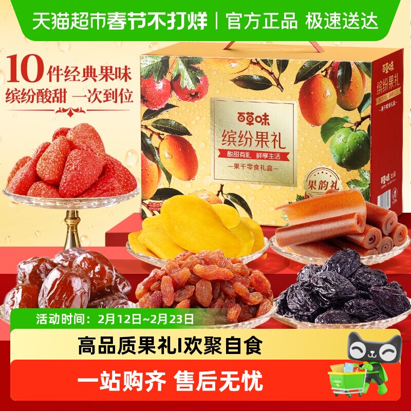 百草味缤纷果干礼盒休闲零食大礼包蜜饯芒果干年货节企业送礼