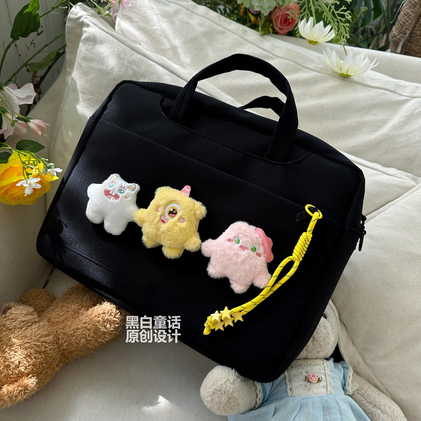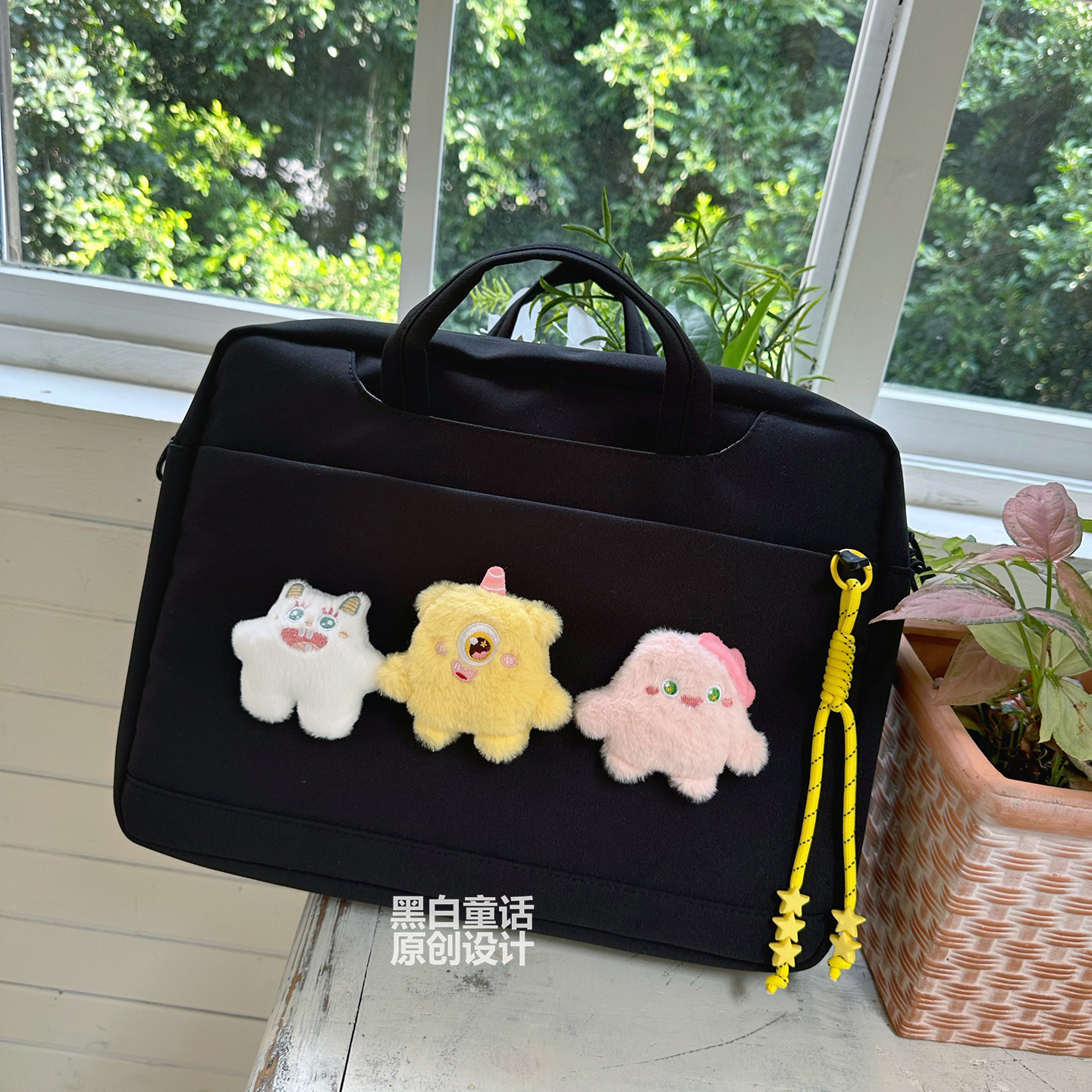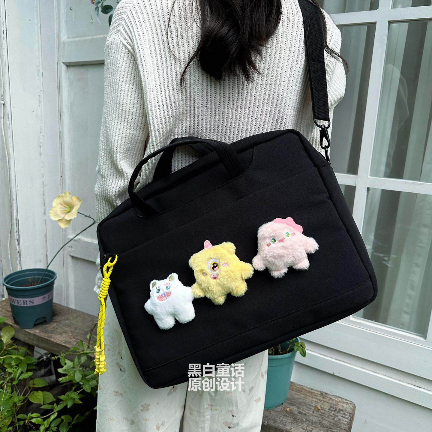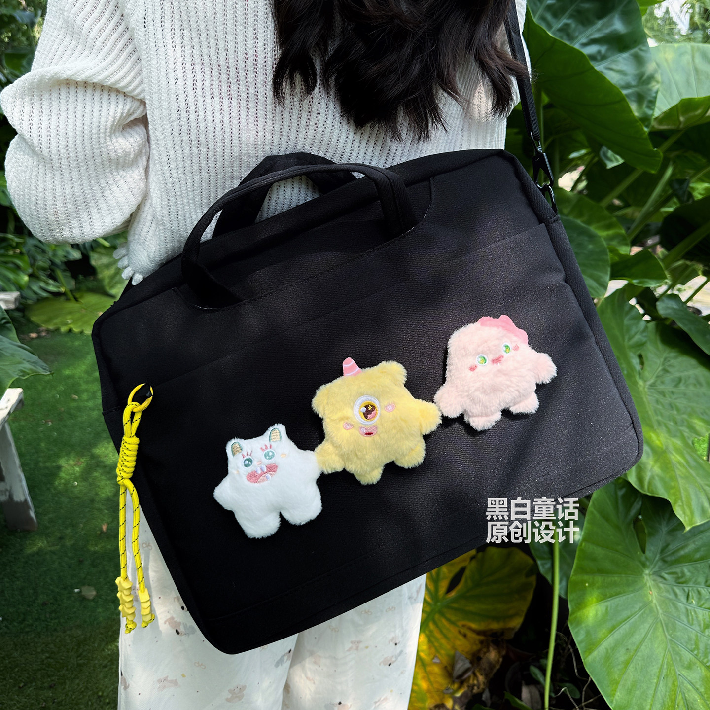 高颜值卡通毛绒独眼怪物公仔贴布笔记本电脑包16英寸女小众设计通勤收纳包适用苹果MacBook联想拯救者r9000p