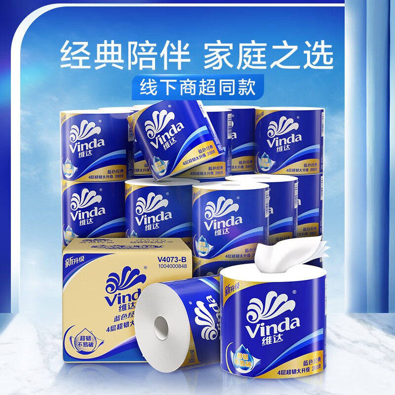【孙颖莎推荐】维达卷纸蓝色经典卫生纸巾四层家庭装有芯卷纸厕所